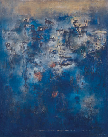 此次“现当代中国艺术拍卖”是苏富比在中国内地举办的第二次大型艺术品拍卖活动。其中的领衔之作《夜之森林》创作于1955年,是法籍华裔大师赵无极“甲骨文时期”的经典代表之作。在这幅以靛蓝为主色调的画中,一股神秘的光晕由上往下地浸染,好像月光照亮了夜晚的森林,勾起观者无穷的想象。据苏富比介绍,《夜之森林》早年被美国堪萨斯威奇塔州立大学乌利希美术馆珍藏,后辗转由亚洲重要私人藏家收纳,在过去近60年保存完好,如今再度现身拍场,估价为1600万元至2400万元。