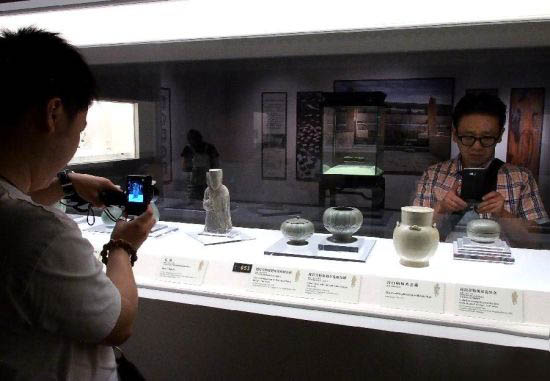 6月7日,游客在考古展上参观出土文物
