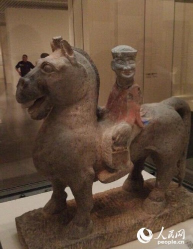 彩绘石骑马人
