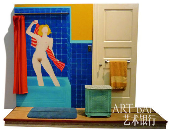 汤姆·威塞尔曼 《盆浴》布面油画、塑料袋、门等 1963 年