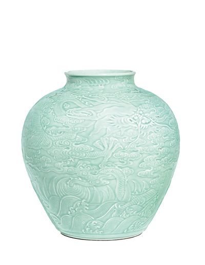 清乾隆“御制粉青釉浮雕龙纹罐”