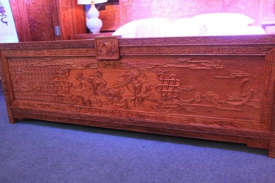 你知道中国的古人生活起居环境是什么样的吗?来中国木雕博物馆吧,在这里,你或许能找到答案。 上周六,由世界手工艺理事会主办的“2014世界工艺文化节”在东阳开幕,伴随着这个盛会的召开,中国木雕博物馆也正式开馆,这无疑又给东阳增加了一张重量级的名片。 整个木雕博物馆有2.6万平方米,相当于3个半足球场,堪称一部向世人展示中国木雕发展演变和木雕精品的生动教科书。整个博物馆共有5个展示厅,世界各地的木雕精品,这里都有。 古人的闺房家具 这里都能看到 对许多小年轻来说,装修房子时往往要考虑很多风格,简欧、现代、田园,再加上这两年突然流行起来的小美式风,是大多数年轻人的首选。 而说起中式风,特别是带着浓厚雕刻工艺味的,小年轻们特别抗拒,总以为这是爸爸妈妈那一辈的人喜欢的风格。不过,如果你来过中国木雕博物馆后,或许想法会有个360度的大转变。 这里有个厅叫社会生活厅,一走进去,就像进入了时光隧道。 古代的书斋、宴席、闺房,甚至姑娘们出嫁时的种种嫁妆,这里统统都有,且样样都离不开木雕的影子。 在一间“闺房”里,一位大家大户人家的小姐在弹琴,一个丫鬟在边上候着,里面的木雕家具摆设精致又温馨,游客看完后,整个人的心都暖了。 在古代,受传统礼教限制,少女们特别是富贵人家的女儿,不能出来抛头露面,起居、琴棋书画、修炼女红,全都在闺房里。 所以,闺房的家具往往配备很齐全,布置非常讲究,木制家具雕刻装饰、精致温馨,体现了闺房生活的情趣。记者看完,还真想在这“闺房”中去住上个把礼拜。 标价5亿元的整套黄花梨家具 三年前也曾展出过 与世界工艺文化节一同开幕的,还有第九届中国(东阳)木雕竹编工艺美术博览会。在博物馆隔壁的木雕城,来自云南、海南、广西、台湾等木雕生产区的木雕竹编,组成了33个展区,向大家展示木雕的工艺。 展会上,一套黄花梨原木做的家具前,从早上到下午,一直都被许多人围观,拍照声也多得停不下来。记者凑上去一看,价值标着“5亿”。 “哇塞,5亿喂!”一个年轻小伙子拿着iPhone6拍照,立马发到了微信朋友圈。炫完宝后,他不忘一通抚摸,才恋恋不舍地离开。 记者了解到,这一整套22件家具,原材料是一棵重约4吨的黄花梨原木,树龄足有千年以上,被业内人士称为“天下第一黄”。这也是木雕节举办至今,展示的最贵的东西。不过,也有资深人士一眼看出,这套家具,两三年前就来参展过,不过当时的标价是1亿。只能说,红木的价格,真是一天一个价呀。