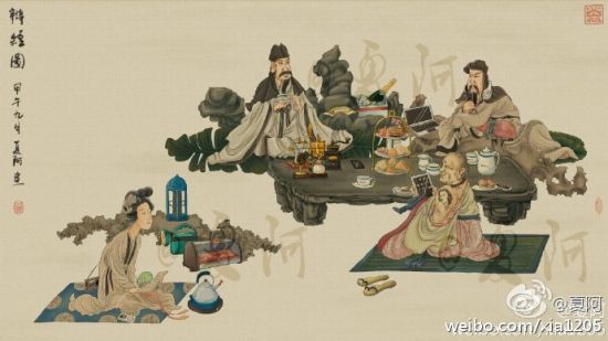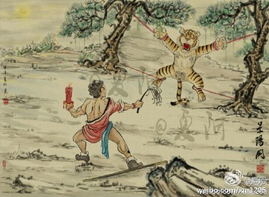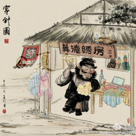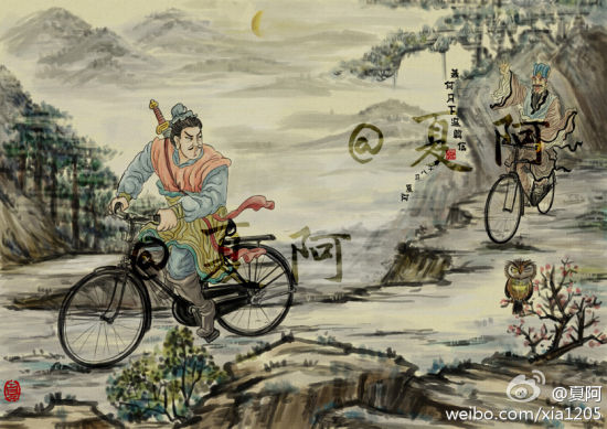 近日,网友“夏阿”的手绘穿越水墨画在微博上引起不少关注。在他的画里,张飞开上了挖掘机,萧何骑上自行车追韩信,奥德曼和小怪兽不再打打杀杀化却身青梅竹马,数码产品充斥在画中古人的生活里,连被武松打的那只老虎都萌萌哒……不可能的,在这里都变成可能! 这些画作受到网友的追捧,而作者趁此时机也把作品做成装饰画放到淘宝店里,这不禁让人好奇,把这样的画放在家里的人,想必一定是有故事的人!