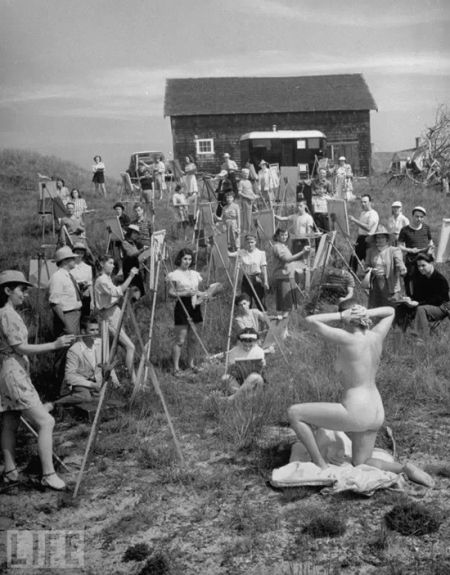 2.1946年范斯沃思艺术学校的学生在户外作画时的情景。据悉,范斯沃思艺术博物馆(Farnsworth Art Museum )是美国东北部的文化胜地之一,馆内收藏有大量路易斯·内凡尔森(Louise Nevelson)、詹米·韦思(Jamie Wyeth)及其他名家的作品。