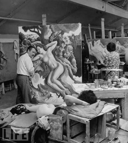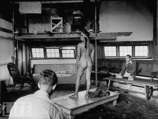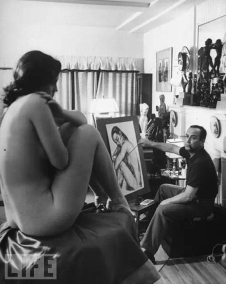 导读:西方艺术家画裸体由来已久,并且成为美术学习者练习造型以及创作的内容之一。人体写生训练在20世纪也逐渐受到中国美术传承者的重视。大家都见过刘海粟等的裸体写生照片,那么你见过西方艺术家创作裸体艺术的场景吗?美国《生活》杂志发布的19张裸体照片让我们看到了他们画裸体的真实写照。
