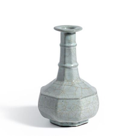 南宋官窑青釉八方弦纹盘口瓶以4800万港元起拍,经过多番竞夺,最终以1.1388亿港元成交。买主为近年来出手颇为“任性”的上海藏家刘益谦。有业内人士将之形容为:“近年市场所见最出类拔萃的中国艺术品”。南宋建都临安时建立修内司,在郊坛建立新官窑,生产宫廷专用御品。目前,包括这次现身的“八方瓶”在内的宋朝官窑精品只有3件流入拍场:1975年3月25日,艾佛瑞·克拉克夫人旧藏贯耳方壶在伦敦苏富比上拍;2008年4月11日,一件纸搥瓶在香港苏富比上拍,以6753万港元成交,创下了当时宋瓷的世界拍卖纪录。