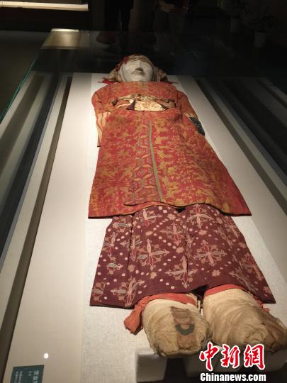 中新网杭州9月15日电 (记者 施佳秀)新疆尉犁营盘男尸、“延年益寿大宜子孙”锦鸡鸣枕、蚕纹象牙杖首饰等数件国宝级文物15日亮相浙江杭州首展的“丝路之绸:起源、传播与交流”大展,向世人展现了从新石器时代以来的丝绸发展之路,通过丝绸之路的主要通道和主要时段出土与丝绸相关的文物,揭示丝绸在中国的起源、丝绸从东方向西方的传播以及东西方纺织文化在丝绸之路上的交流、世界丝绸艺术的变化和技术提高。